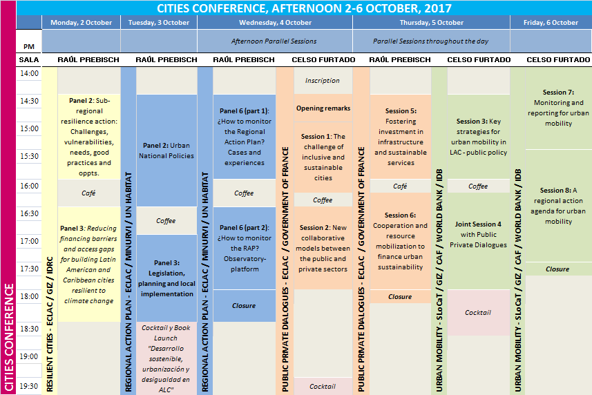 The Cities Conference was held at ECLAC´s headquarters in Santiago, Chile, from 2-6 of October 2017. In order to build impetus on the commitments adopted at Habitat III, it focused on the strategic aspects and mechanisms for the implementation and monitoring of the New Urban Agenda in Latin America and the Caribbean, with discussions particularly relating to the Regional Action Plan for the Implementation of the New Urban Agenda and the proposal for a Regional Urban and Cities Platform.