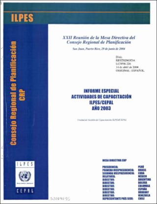 Informe especial actividades de capacitación ILPES/CEPAL año 2003