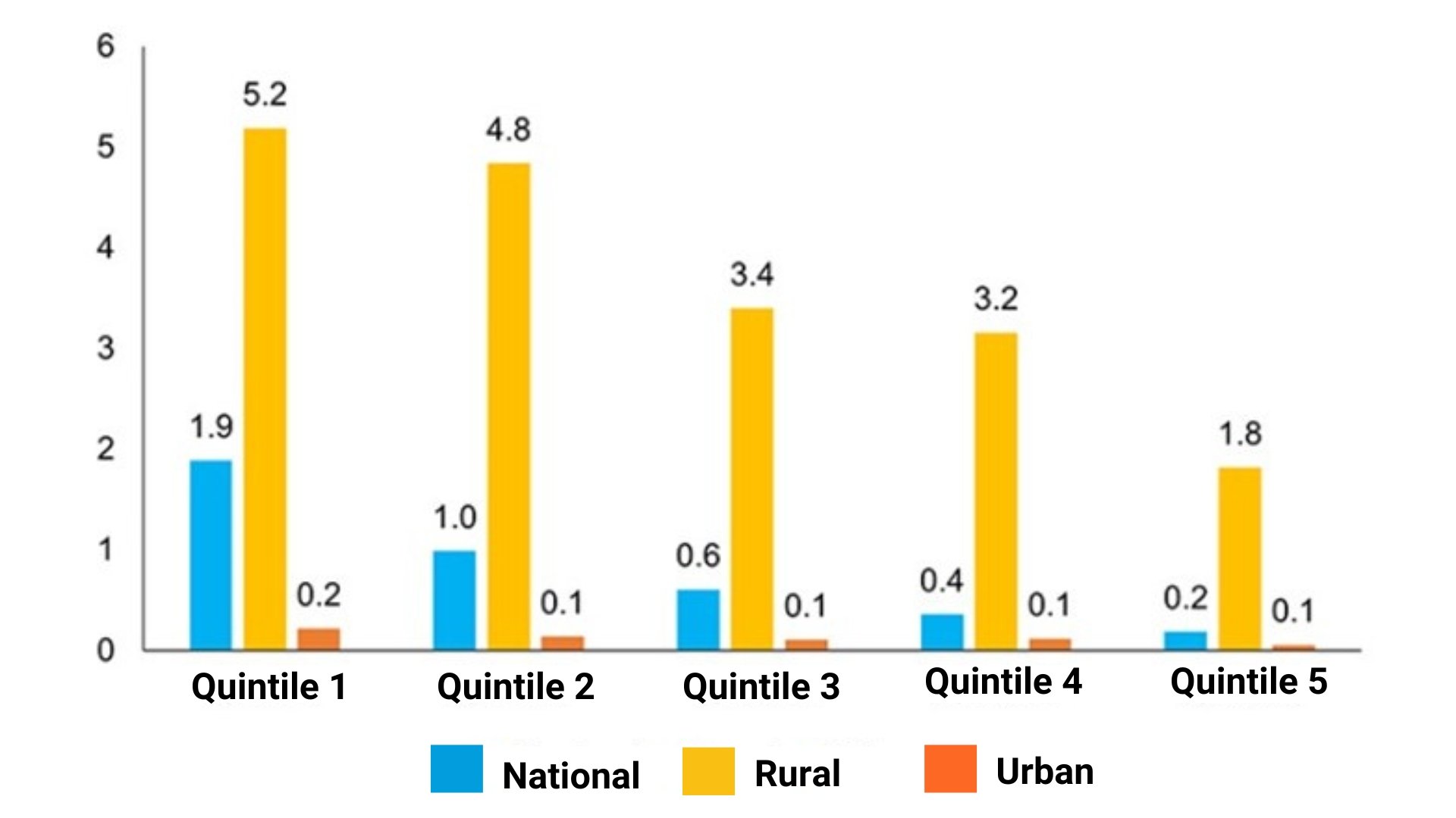 Latin America and the Caribbean: proportion of the population without access to electricity by quintiles. A quintile represents population groups of 20% of the total, ordered by income distribution (from lowest to highest) of income (rural, urban and total), latest available year.