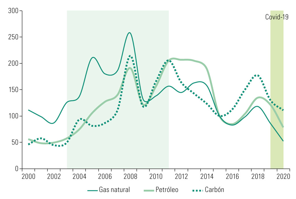 y combustibles fósiles: índices de precios, 2000-2020