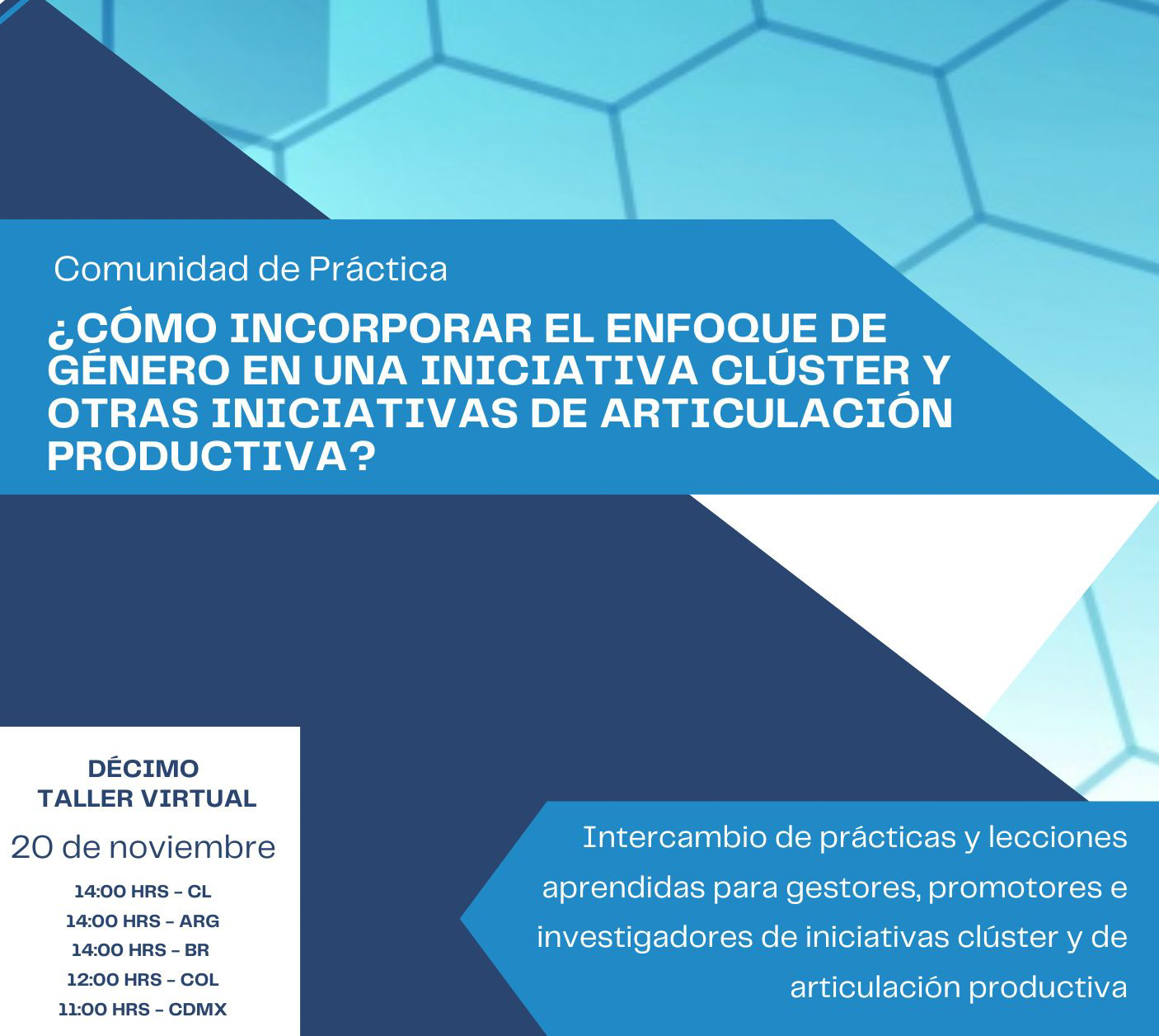 Décima Comunidad de Práctica: ¿Cómo incorporar el enfoque de género en una iniciativa clúster y otras iniciativas de articulación productiva?