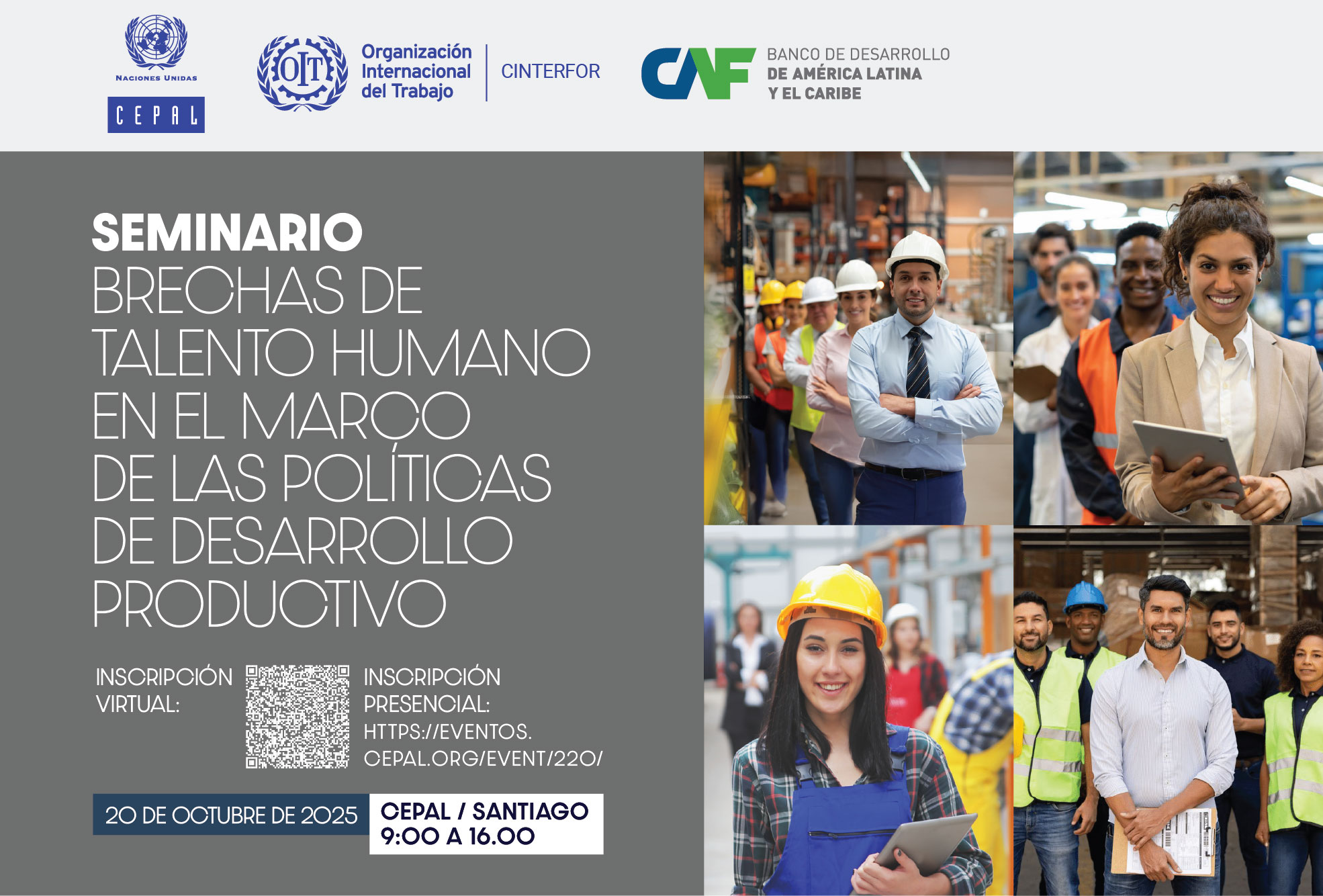 Este seminario se enmarca en la cooperación técnica regional “Experiencias de identificación y cierre de brechas de talento humano bajo las políticas de desarrollo productivo en la región”, llevada adelante por CAF-banco de desarrollo de América Latina y el Caribe, la Comisión Económica para América Latina y el Caribe de las Naciones Unidas (CEPAL) y la Organización Internacional del Trabajo (OIT), a través de su centro Cinterfor y tiene dos grandes objetivos. El primero es difundir los resultados del estudio realizado en el marco de esta cooperación técnica regional, que sistematizó experiencias de identificación y cierre de brechas de talento humano en el marco de políticas de desarrollo productivo en el Brasil, Chile, Colombia y la República Dominicana. El segundo objetivo es establecer un dialogo regional para intercambiar experiencias y posibles hojas de ruta que les permitan a los países de la región mejorar las estrategias de identificación y cierre de brechas de talento humano en el marco de las políticas de desarrollo productivo.