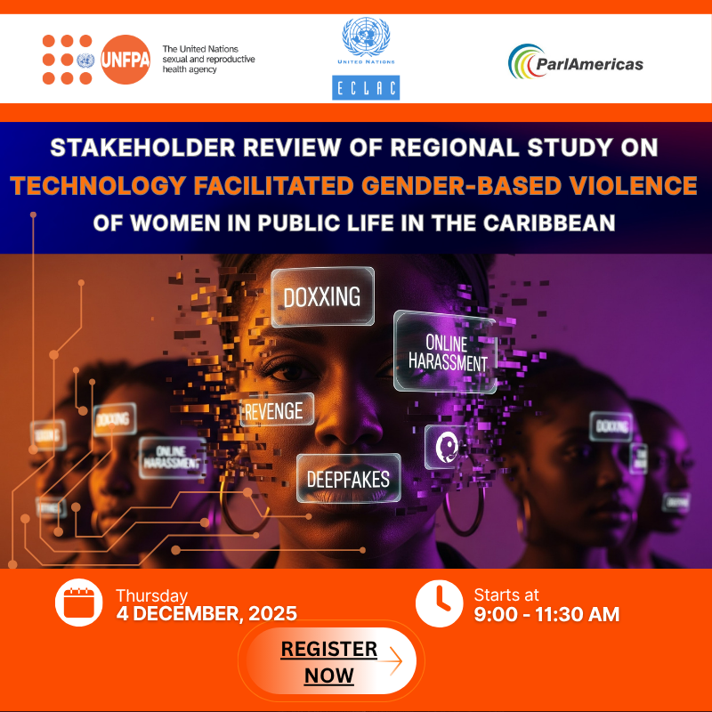 This joint initiative between UNFPA Caribbean Sub-Regional Office and the Economic Commission for Latin America and the Caribbean (ECLAC), Subregional Headquarters for the Caribbean, will be the first regional study focusing on TFGBV targeting women parliamentarians and women in media across the 22 Caribbean territories covered by UNFPA. The effort will also explore possible collaboration with ParlAmericas, leveraging their engagement with Caribbean legislatures.