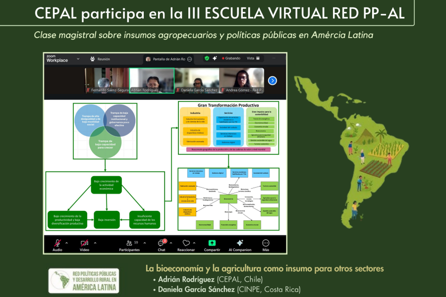 Durante tres días, más de 110 investigadores y docentes de América Latina y el Caribe participaron en la Escuela Virtual de Políticas Públicas y Desarrollo Rural, donde la CEPAL presentó su visión sobre la bioeconomía como eje estratégico del desarrollo productivo de América Latina y el Caribe.