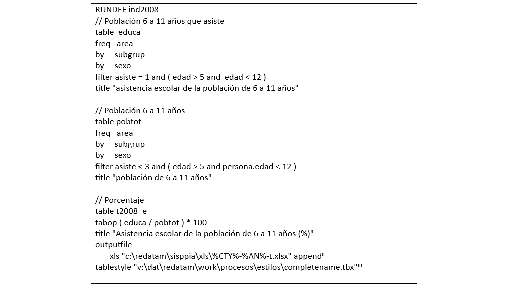 ii Esta sintaxis nos permite ir agregando las tablas de resultados según criterio a un mismo a archivo, en este caso el criterio es país, censo, año e indicador.